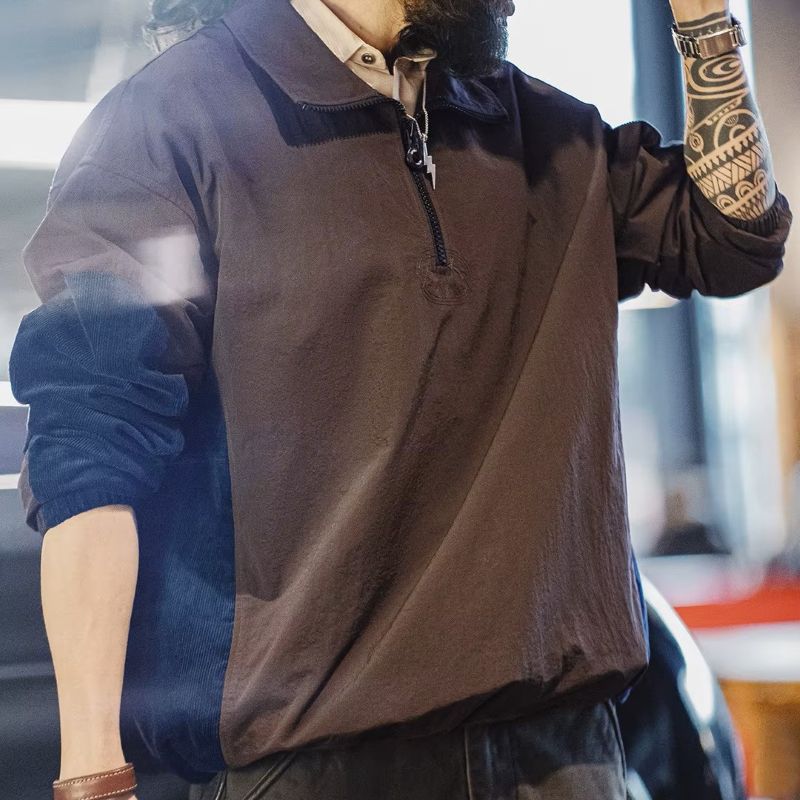 Color-block panels of soft corduroy add structure and texture to this half-zip pullover. The stand-notch lapel and casual cut ensure comfort, while the solid base tones let the design shine through. Perfect for layering over a tee or pairing with jeans. A versatile piece for both relaxed days and outdoor style.